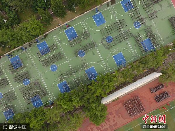 近日,河南郑州,郑州大学开始为期两周的新生军训,作为全国“人最多”高校,今年郑州大学参与军训的本科新生达1.36万人,仅新校区就有9000人军训,航拍军训操场,队列虽分散,却整齐似豆腐块,颇为抢眼。图片来源:视觉中国