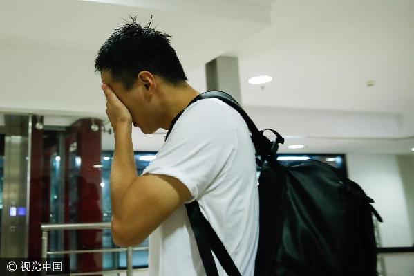 卡塔尔多哈,赛后32岁的国足后防核心冯潇霆伤心落泪。