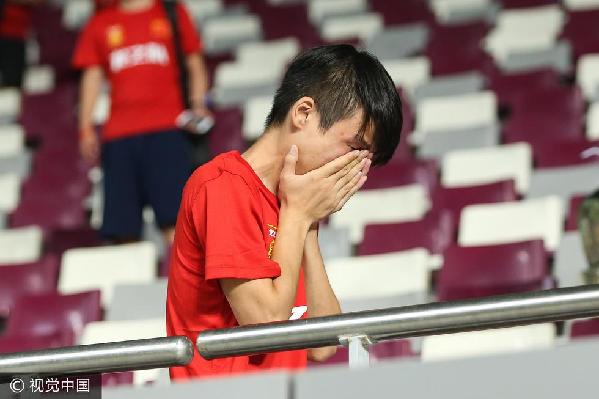 还是在昨晚的多哈,虽然赢了球,但无缘世界杯令远征的中国球迷伤心掩面痛哭。