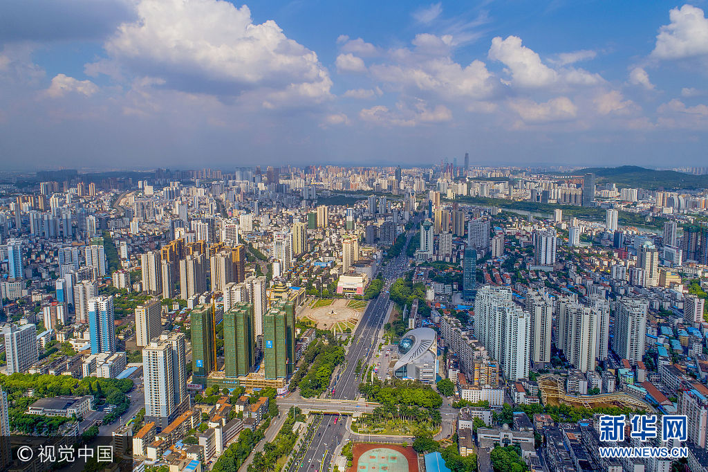 图为2017年8月20日航拍的南宁城市风光。(图片来源:视觉中国)