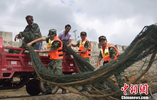 图为边防官兵帮助民众抢收渔具。彭赟 摄