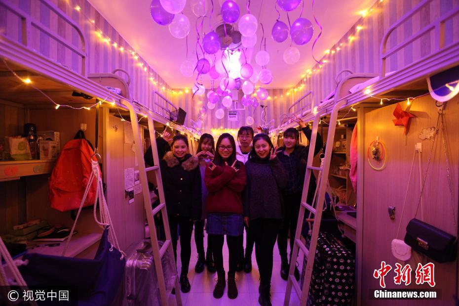 重庆大学城市科技学院部分男生宿舍和女生宿舍,学子们利用废旧材料制作、贴图案、画美图等形式,将宿舍装饰成田园范、地中海式、后现代等不同风格的“寝室文化”。别具一格舒适的吊椅,天花板上“手绘+挂饰”的精心布置,繁星般的藤蔓灯串把整个宿舍装饰得熠熠生辉,浪漫、温馨又自然......靓丽有特色的“寝室文化”赢得广大师生的好评。图片来源:视觉中国