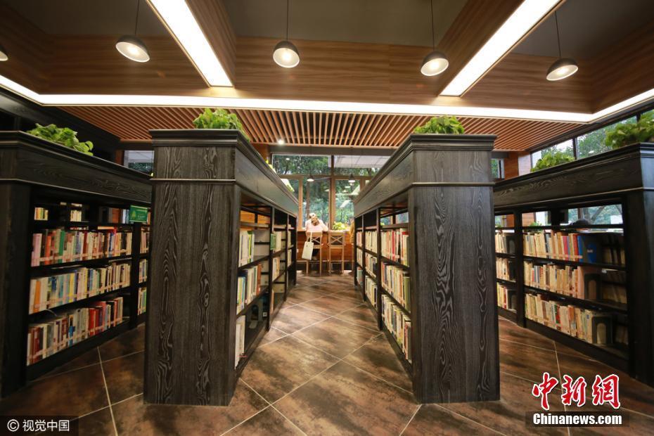 在重庆大学虎溪校区松园一栋一楼的松园书屋,图书馆馆内有着暖黄的灯光、厚重的木桌、生机盎然的植物、柔软舒服的桌椅,整个图书馆文艺范爆棚。图书馆占地约300平米,现有藏书约6000余册,大部分为文学类书籍。据了解,图书馆开业来,前来的学生很多,到周末更是一座难求。图书馆工作人员介绍,有别于虎溪图书馆,松园书屋主要为学生提供一个阅读的环境,享受阅读的快乐。图片来源:视觉中国