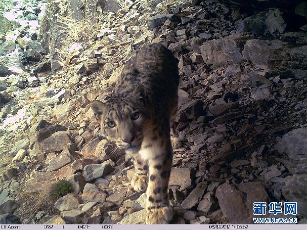 这是此次调查工作中红外相机拍摄到的雪豹影像(6月19日摄)。