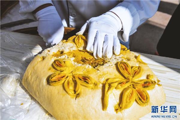 9月27日,第十三届平安文化艺术节在青海省海东市平安区开幕,开幕式上除了展出的牛头宴、形式各样的手工月饼外,其中最吸引眼球的当属重达260斤,直径1.2米的月饼王。