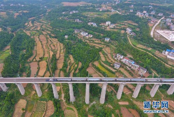在四川省广元市境内,一辆列车行驶在兰渝铁路上(9月14日摄)。 新华社记者 刘坤 摄