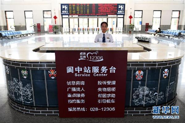 在四川省南充市境内的兰渝铁路阆中站,车站客运人员在候车厅服务台值班(9月12日摄)。新华社记者 范培珅 摄