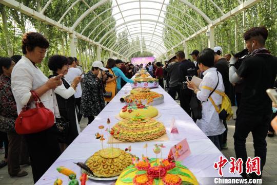 9月28日,地处甘肃河西走廊的金昌市金川区,“花好月圆”乡村传统月饼大赛在紫藤长廊举行。当天,两镇、六街道的月饼制作能手们将自己亲手制作的33套具有金川区特色的鲜花月饼一一展示。