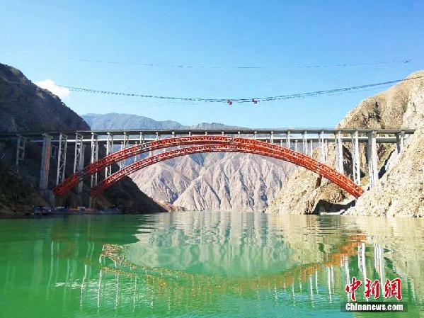 跨越黄河天堑的苏龙珠特大桥,该桥系目前西北五省单跨最大的上承式钢管拱桥。 韩龙 摄