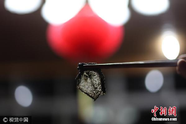 “岩耳炖乌鸡”是陕渝交界的大巴山里的一道名菜,岩耳和乌鸡是绝配,味道鲜美。炖熟的岩耳很像乌鸡皮。岩耳,因食用价值高,加之采摘极为难艰,岩耳极为珍贵。本草纲目》说它“气味甘,清平无毒”,有“明目益精之功能”。经常食用,对降压、消炎、去火及胃病、肝癌患者有一定疗效与滋补作用。《本草纲目拾遗》云:“作羹饷客最为珍”,享有“素中荤”、“植物肉”的美称。图片来源:视觉中国