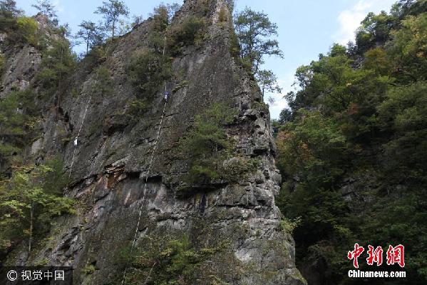 大巴山年轻人绝壁上采岩耳 用生命换美食