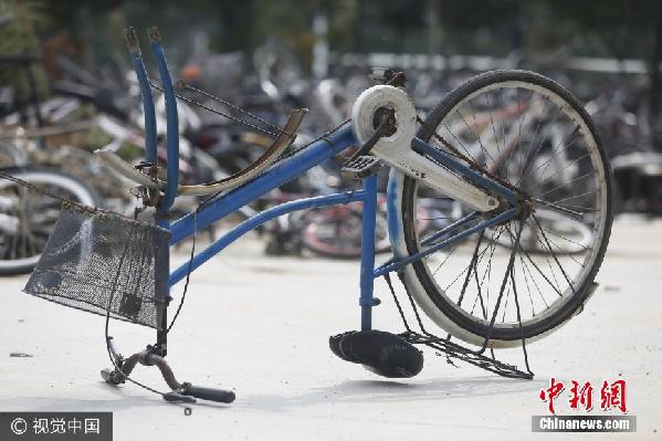 据了解,这些“僵尸单车”存在已久,大部分都是学生毕业后留下的。一些学生说,“当时这些车在跳蚤市场转手,一辆10块钱都没人要,学哥学姐们一气之下,便扔在校园里了。”图片来源:视觉中国