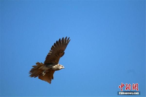 10月上旬,野狼、赤麻鸭、秃鹫、蓝马鸡、旱獭等各类野生动物出没在祁连山下,觅食、嬉戏、翱翔,勾勒出一幅动物和谐共融的美丽画卷。图为秃鹫翱翔在天空。郎文瑞 摄