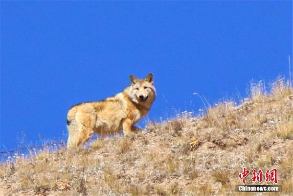 10月上旬,野狼、赤麻鸭、秃鹫、蓝马鸡、旱獭等各类野生动物出没在祁连山下,觅食、嬉戏、翱翔,勾勒出一幅动物和谐共融的美丽画卷。图为10月上旬出现在祁连山草原的野狼。郎文瑞 摄
