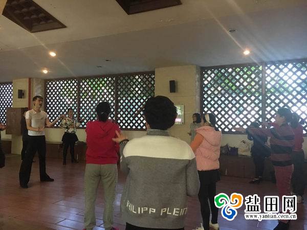 在这节课中,谢老师带领居民学习了手部动作以及跨部的摆动等拉丁舞基础知识。为了更形象地突显拉丁舞的学习技巧,谢老师数着节拍一遍一遍的耐心示范,并现场手把手纠正学员的错误动作。特别是在胯部学习的过程中,有很多居民由于没有舞蹈基础,以及有点小拘谨,导致动作不是很到位,在谢老师的教导及纠正下,所有的前来参加的居民基本掌握了相关动作要领。