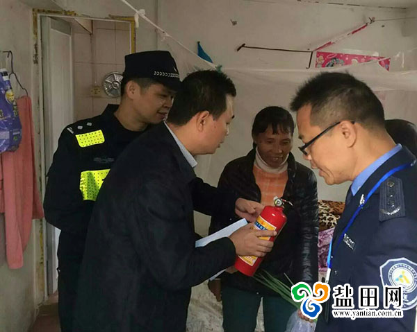 梅沙街道社区网格管理中心组织到大梅沙村派送灭火器
