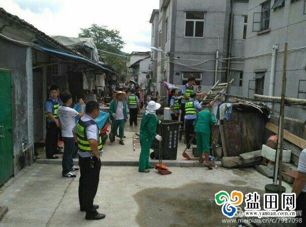 梅沙街道城管、执法队及清扫保洁单位现场清理乱堆放的杂物