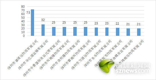记者了解到,交警还公布了片区违法次数最多的10家公司,违法次数最多的10辆车以及违法次数最多的10个路段。相关数据显示,深圳市德诚达物流有限公司违法次数高达73次,排名第一;深圳市华亿通运输有限公司违法次数达32次,排名第二。违法次数最多的路段中,明珠道排名第一,北山道排名第二。