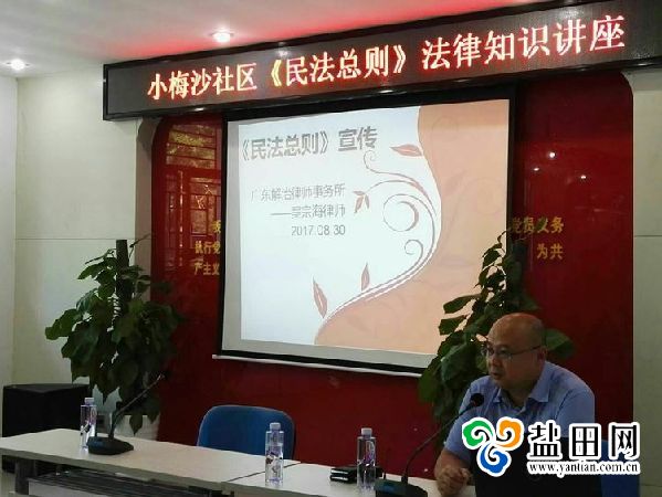深圳新闻网讯 为了让社区居民了解与生活息息相关的《民法总则》,8月30日下午,梅沙街道司法所联合小梅沙社区工作站召集辖区居民在小梅沙社区工作站开展《民法总则》法律知识讲座。此次活动邀请了小梅沙社区法律顾问——吴宗海律师担任主讲人。