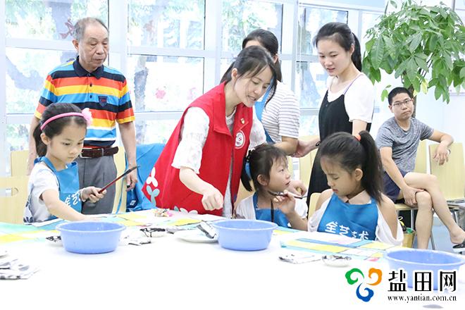 小朋友们认真听课,跟着老师的步骤学画,经过老师的耐心指点,社工和义工的帮助下,很快都掌握了基本技巧,近30位小朋友都完成了暑期的第一幅中国画,稚嫩的脸上堆满笑容,收获了成功的喜悦,也培养了兴趣爱好。