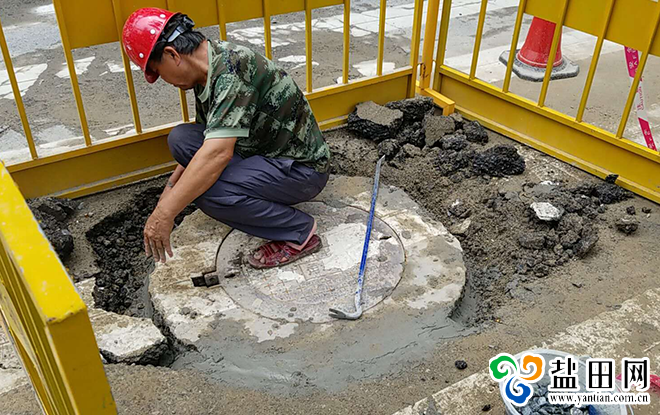 市水务集团盐田分公司连夜开展修复工作,至23日早上,该处已完成井盖修复和混凝土浇筑,待混凝土凝固恢复沥青路面后即可恢复通行。