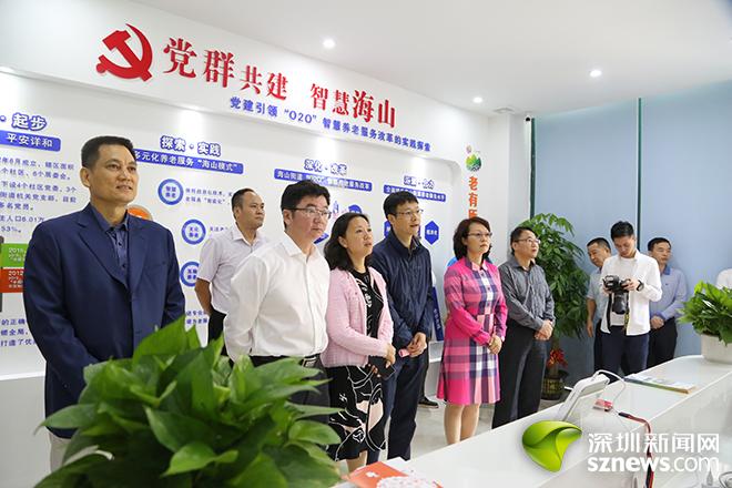 揭牌仪式后,与会人员参观了服务大厅,观看了海山街道“O2O”智慧养老改革项目宣传介绍,现场体验了老年人智能穿戴及智能家居设备。