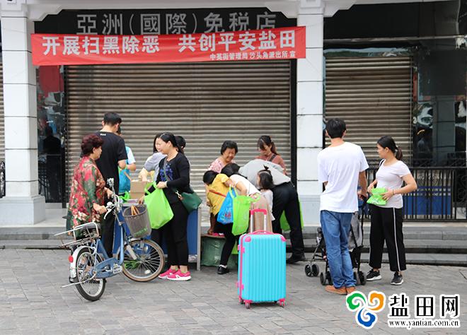 深圳新闻网讯(记者 潘峰 通讯员 裘欢欢 程君婷)“扫黑除恶”专项斗争是一场人民战争,为深入推进辖区居民群众对扫黑除恶专项斗争及创建“平安建设示范区”工作的知晓率和参与率,11月9日下午,中英街管理局维稳综治办在中英街南广场开展了一场以“开展扫黑除恶共创平安盐田”为主题的宣传活动。
