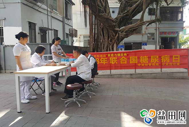 深圳新闻网讯(记者 潘峰 通讯员 黄晓音 黄平英)2018年11月14日是“联合国糖尿病日”,今年宣传的主题是“家庭与糖尿病——糖尿病关系每个家庭”。近日,中英街管理局结合实际,邀请中英街社康医生一同开展糖尿病防治知识的宣传义诊活动,向居民发放糖尿病科普知识宣传资料,宣传通过健康的生活方式来预防和改善糖尿病,呼吁家庭成员协力,从改变生活方式出发,生活“只要甜蜜,不要负担”。