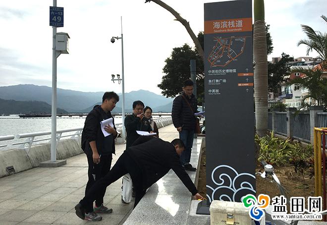 验收勘查小组一行沿街勘察了滨海步道、中英街、步步街、环城路、桥头街、海傍路等地,从工程质量、工程资料、安全资料、感观质量等多个方面认真检查评估,一致认为工程质量达到了设计及规范要求,验收结论为合格,顺利通过验收。完成现场验收后,社会事务科就中英街视觉系统工程竣工验收内容开展座谈,下步施工单位根据验收内容准备竣工验收资料形成竣工验收意见,验收勘查小组人员分别签字,中英街管理局盖章。