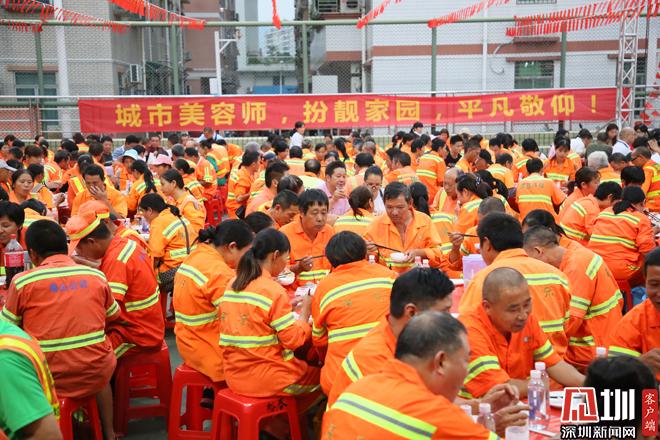 最后,出席的领导嘉宾和环卫工人一起品尝大盆菜,观赏精彩的文艺表演。据悉,此次活动为盐田区关爱环卫工人系列活动中的一环。盐田区以此为契机,持续开展关爱环卫工人系列活动,感恩环卫工人的无私奉献,号召全社会关注、理解和尊重环卫工人,并发动全区各类社会主体以多种形式关爱环卫工人,让环卫工人切实感受到职业自豪和社会温暖。