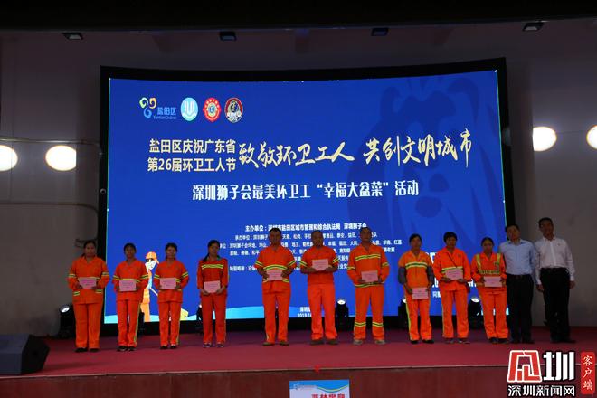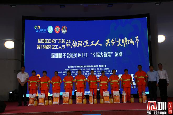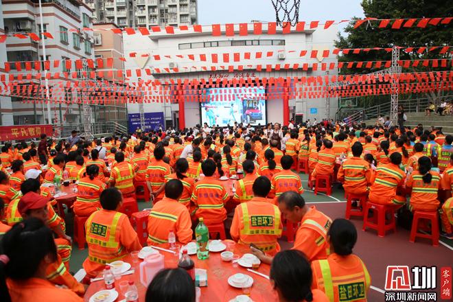 见圳客户端•深圳新闻网讯(记者 邓雪婷)为庆祝广东省第26届环卫工人节和深圳市第3个“关爱环卫工人日”,发动全社会关爱环卫工人,大力倡导保护盐田环境和垃圾不落地的文明生活方式,2019年10月26日,盐田区城管和综合执法局携手深圳狮子会在盐田区沿港社区篮球场举办“致敬环卫工人 共创文明城市”幸福大盆菜活动,500名环卫工人齐聚一堂,共同品尝大盆菜,观看慰问演出。区委常委雷卫华参加活动并向环卫工人发放慰问品及慰问金。