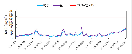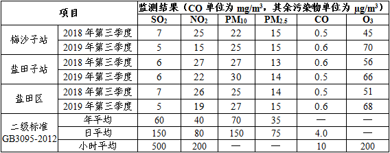 表2 2019年第三季度盐田区环境空气浓度监测数据统计
