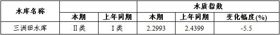 盐田区饮用水源为三洲田水库,2019年第三季度水质达到地表水Ⅱ类标准,水质指数为2.2993,营养状态等级为贫营养,无超标污染物。