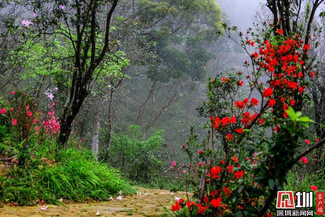 梧桐山上的杜鹃花 碧树红花相掩映