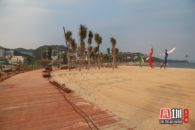 杨军一行实地察看了大梅沙海滨公园和海滨栈道施工现场,听取了项目进展情况汇报。据悉,大梅沙海滨公园重建项目分两个阶段进行,第一阶段为修复工程,已按计划于2019年“五一”实现开园。第二阶段为重建工程,目前,约8万平方米的沙滩区域已完成海底杂物的打捞,正开展沙滩的平整、筛选;园林绿化部分正开展绿化种植、石材地面和实木地面的铺装;照明系统、监控系统、预约系统等配套设施正在安装调试;目前正在开展包括卫生间、淋浴间、客服中心、急救中心、停车场、愿望塔风信廊桥、景观廊桥等11个建筑主体的施工。今年“五一”期间,3号卫生间、急救中心、公园入口广场、海天剧场等建筑和设施将投入使用。记者在公园看到,公园内的地板铺设、景观提升等各项工程还在紧锣密鼓进行中,整体改造的雏形已经基本显露。