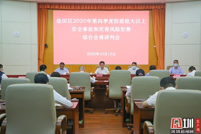 见圳客户端•深圳新闻网讯(记者 邓雪婷 李小辉 通讯员 葛亮)2020年10月15日上午,盐田区召开2020年第四季度防范较大以上安全事故和灾害风险形势综合会商研判会议。会议总结前三季度全区安全生产、消防安全、道路交通和建筑施工安全态势,分析预判当前面临的工作压力和形势,并部署第四季度各项重点工作。据悉,今年前三季度,全区未发生较大以上安全事故,总体安全形势平稳可控。盐田区委副书记、区长邓飞波,区领导王琨、李小宁、陈文盛以及区安委会各成员单位主要负责人参加会议。