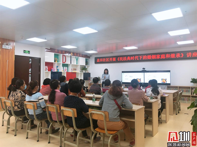 见圳客户端•深圳新闻网讯(记者 邓雪婷)为深入贯彻落实习近平总书记关于广泛开展民法典普法工作的重要指示精神,践行法治国家、法治社会、法治政府建设,盐田区法学会联合区司法局举办《民法典》走进社区公益普法活动。近日,第一场《民法典》公益普法活动便走进了盐田街道盐田社区,由宣讲团成员、泰和泰(深圳)律师事务所律师郑洋以“民法典时代下的婚姻家庭与继承”为题,为社区居民作民法典宣讲。