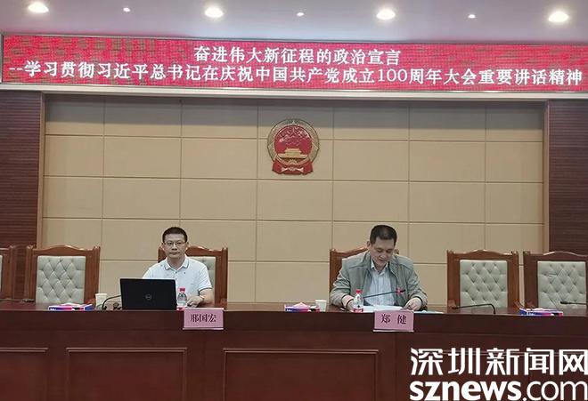 读特客户端•深圳新闻网2021年10月29日讯(记者 潘峰)为深入开展党史学习教育,以及扎实开展新一轮“大学习、深调研、真落实”活动,2021年10月28日下午,盐田区委政法委邀请区委党校邢国宏副教授,为全委党员干部作习近平总书记在庆祝中国共产党成立100周年大会上的重要讲话精神专题讲座,区委政法委常务副书记郑健主持会议。