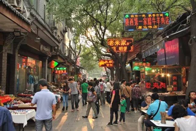 重点来了~钟鼓楼后面的回民小吃街有很多美食,肉夹馍、biangbiang面、凉皮,简直就是面食、肉食爱好者的天堂