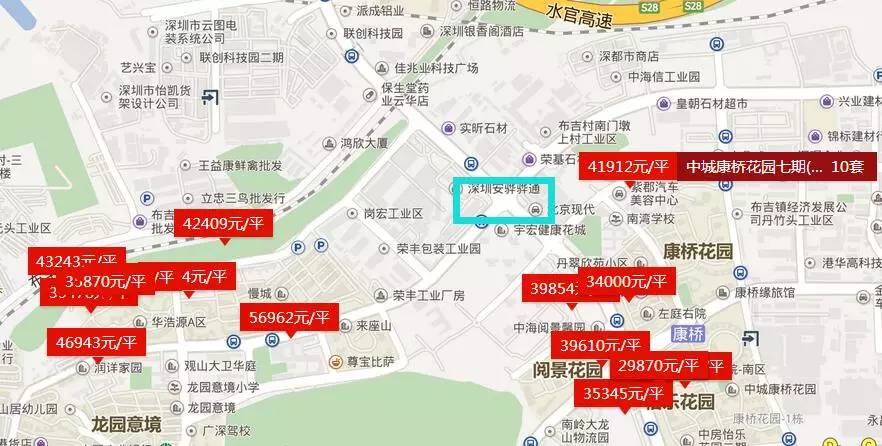 周边有华润万家,百安居家具城,平方超市等购物中心,公交站有宝安北路口,很快就到笋岗仓库,可直达东门步行街,交通很便利。房子楼层高,电梯房,多个小户型的单身公寓房,价钱低,满足更多上班族的需求。负担小,周围安静。 二手房价区间在4.1万-5.6万元之间。