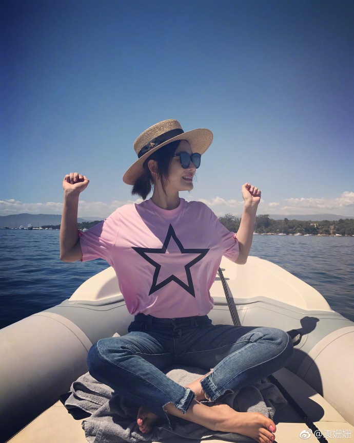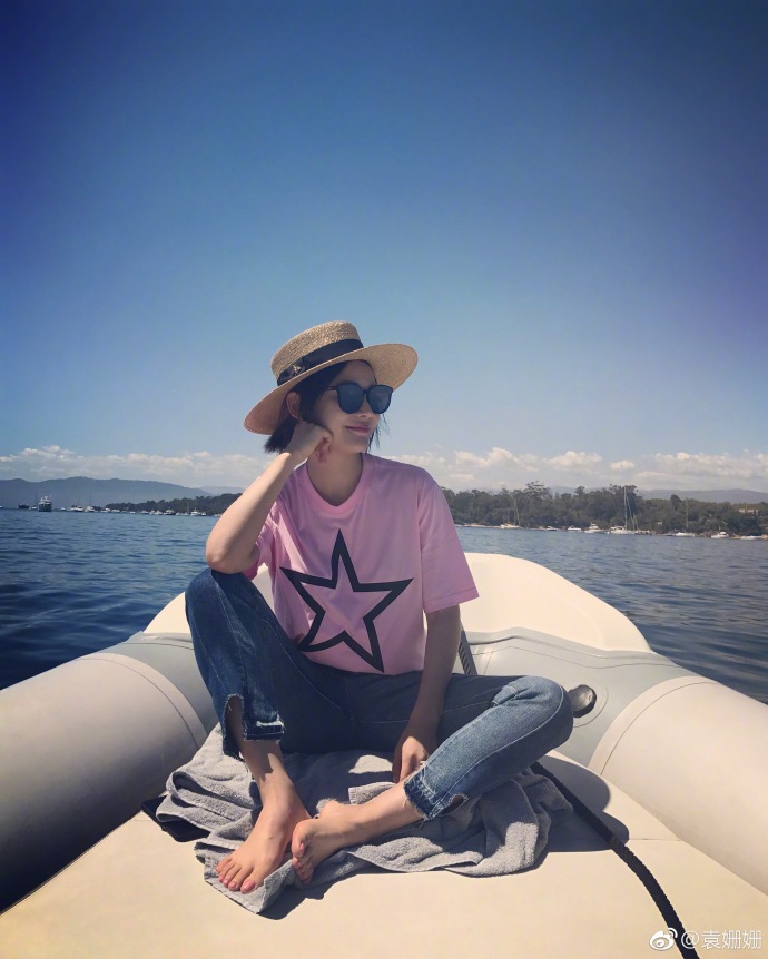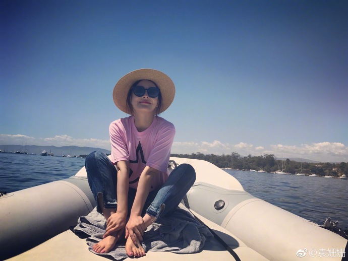 6日,袁姗姗在微博中晒出一组出游照并写道“走一圈”,照片中的她身穿粉色T恤搭配牛仔裤,头戴遮阳帽十分休闲,坐在海上的皮划艇悠闲得享受阳光,一脸灿烂的笑容。或坐在地上的树叶涂鸦上,美美自拍。网友表白道“老婆,你好美!!你造吗?”“最后一张莫名萌”“厉害了小傻瓜”。