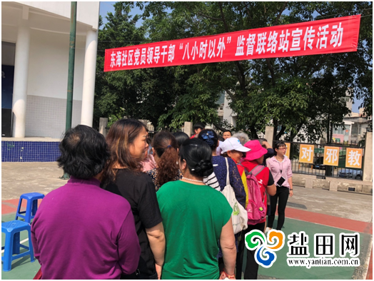 据了解,东海社区监督联络站充分利用宣传栏、微信等平台方式,大力宣传党员领导干部“八小时以外”活动监督管理的意义,让群众了解和明确党员领导干部“社交圈”“生活圈”“休闲圈”中的“不可为”行为。设立举报箱,开启群众监督渠道,加大党员领导干部“八小时以外”活动监督力度,营造良好的舆论氛围。