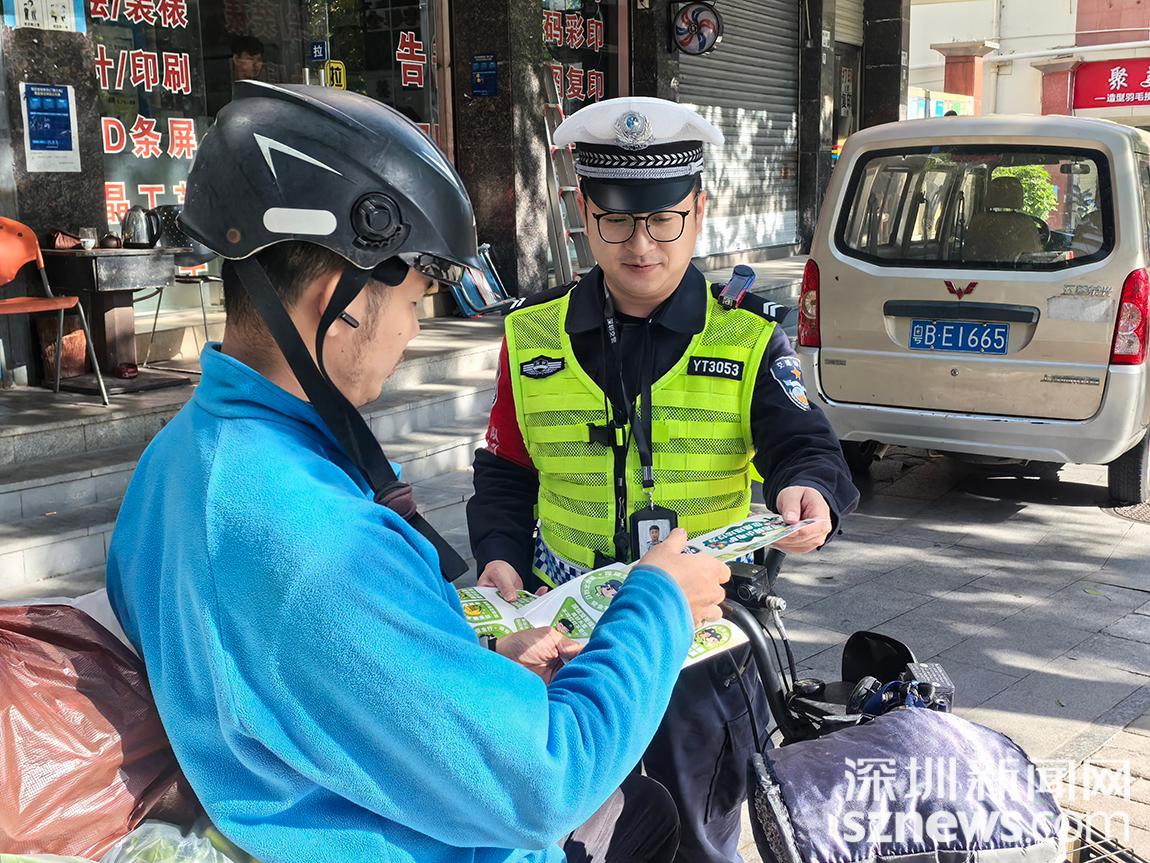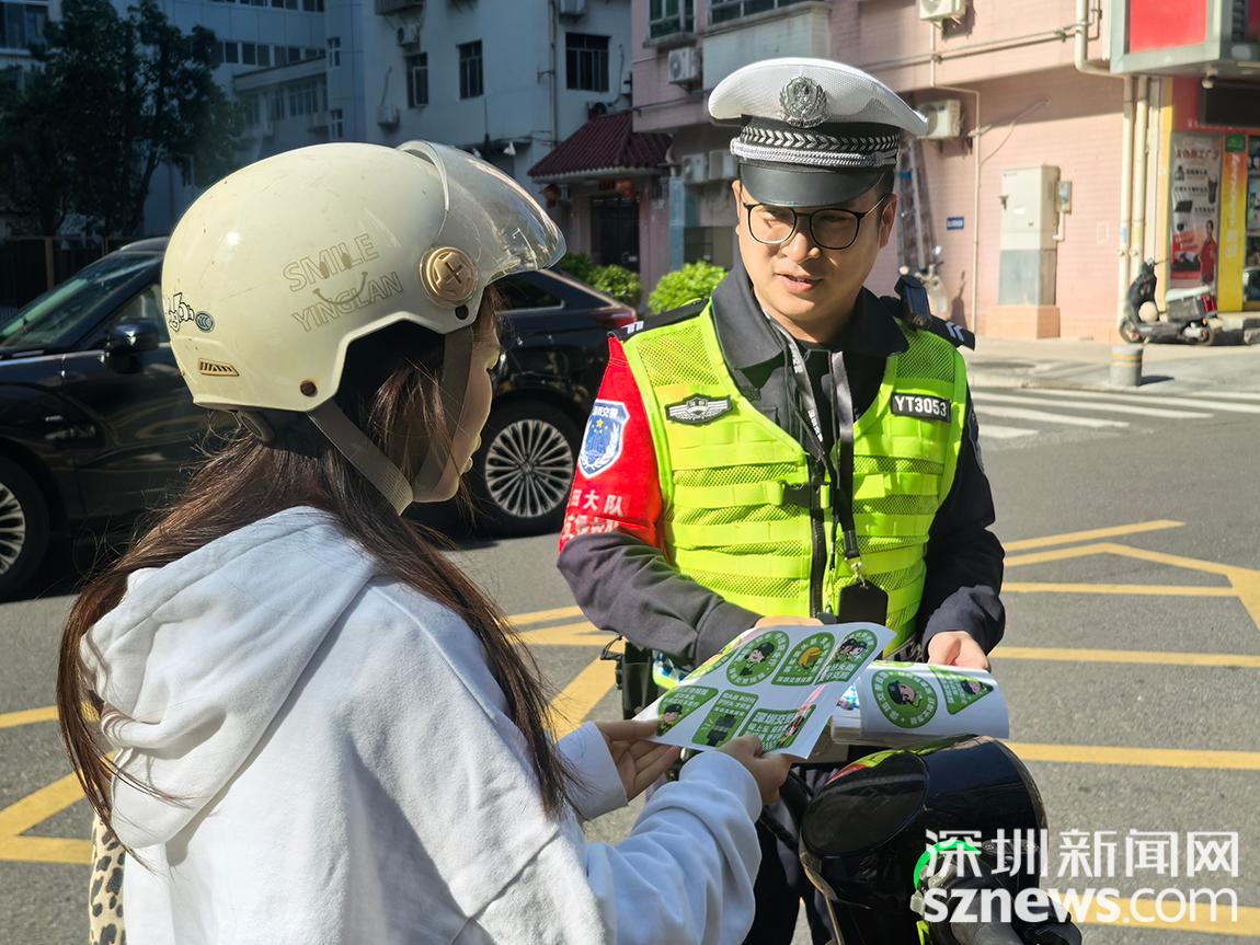 深圳新闻网2025年11月25日讯 为强化电动车驾驶人安全意识,有效预防涉电动车交通事故,11月25日,深圳市公安局交通管理支队盐田大队深入社区及电动车集中停放点,组织开展“安全提示进万家”交通安全宣传活动,向市民免费发放印有“骑行不喝酒,喝酒不骑行”“戴好头盔,遵守交规”等交通安全标语的提示贴纸,将安全理念送到群众身边。