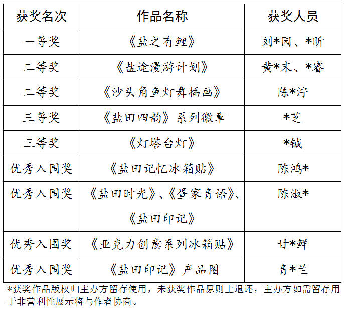 主办方根据大赛要求对投稿作品进行筛选,并由专业评委打分统计,本次“盐田印记”文创设计大赛结果已出,现进行结果公示。