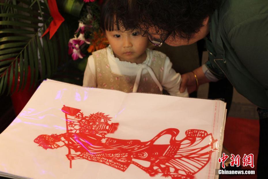 连日来,74岁的甘肃艺人谢玉兰在甘肃艺术馆里秀起剪纸绝活,只见一把剪刀“游走”在红纸中,几分钟便有一幅幅人物、花鸟的作品跃然眼前,不需要构图她便可以即兴剪出题材多样的作品,这也得益于从幼时练就的“童子功”。徐雪 摄