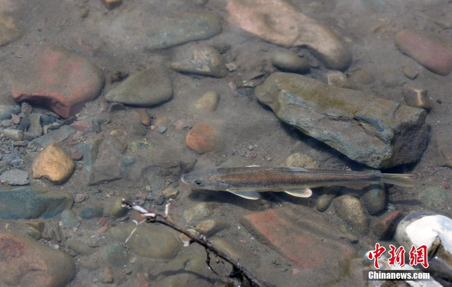 6月14日在青海省海北藏族自治州刚察县沙柳河湟鱼家园洄游通道正在溯游而上的湟鱼。
