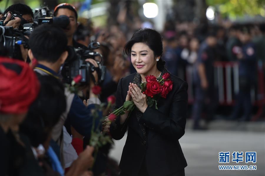 8月1日,在位于曼谷的泰国最高法院前,泰国前总理英拉向支持者致意。泰国前总理英拉8月1日在泰国最高法院作大米收购案结案陈词,称自己为“政治游戏的受害者”,否认检方提出的所有指控。最高法院则再次驳回英拉方面将本案提交宪法法院裁决的诉求,维持将于8月25日对本案进行宣判的决定。新华社记者李芒茫 摄